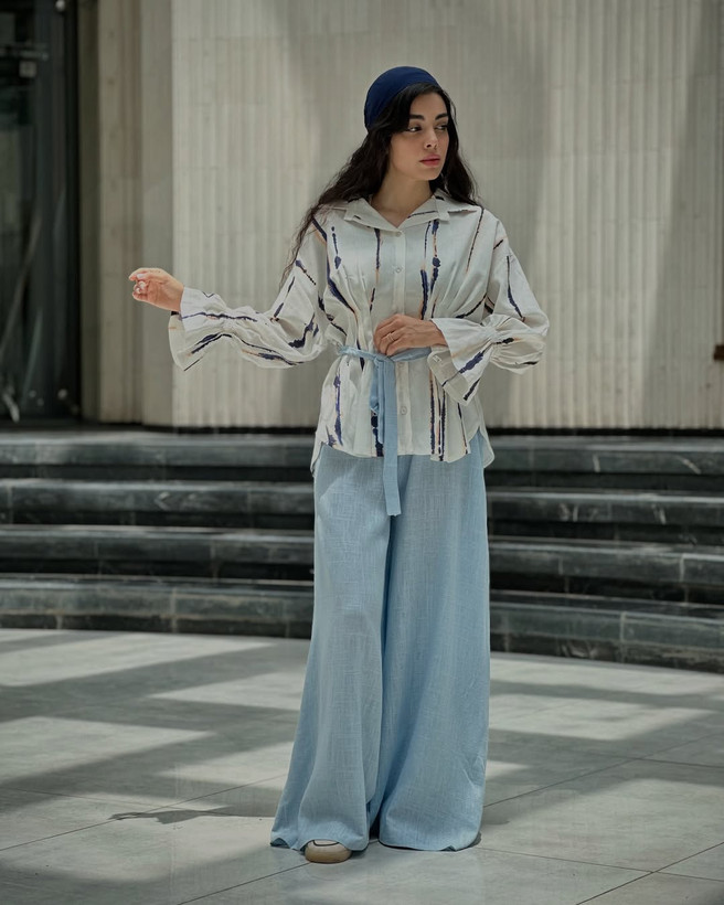 استایل خنک و خوشفرم برای روزهای گرم و پرجنبوجوش! جنس پارچه: لینن طرحدار (سبک، تنفسپذیر و خنک). دو سایز مختلف موجوده.