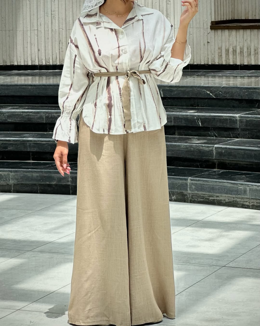 استایل خنک و خوشفرم برای روزهای گرم و پرجنبوجوش! جنس پارچه: لینن طرحدار (سبک، تنفسپذیر و خنک). دو سایز مختلف موجوده.