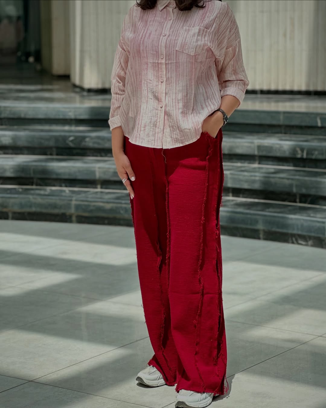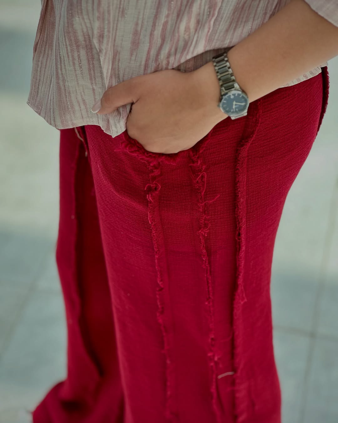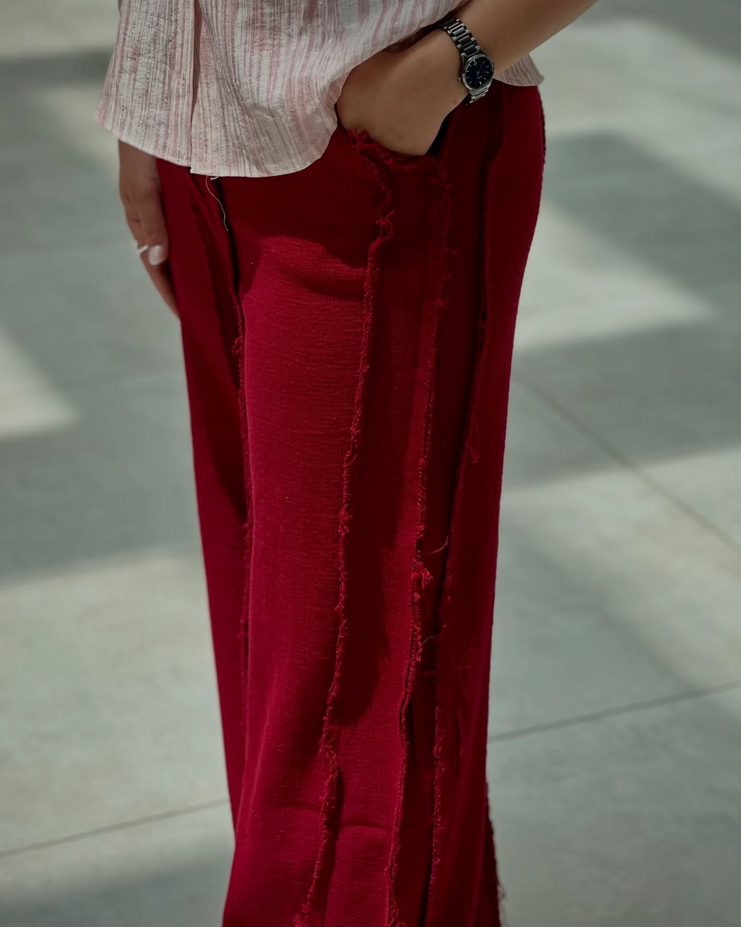 شلوار بگ لنین نخی با یه کت کراپ طرح پینترسی ست میشه. نتیجهاش یه استایل خاص، خنک و چشمگیره! هم برای روزای گرم، هم برای قرارهای خودمونی.