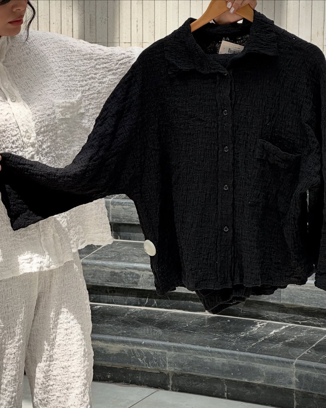 ست مانتو شلوار از جنس لنین پفکی، سبک، لطیف و مناسب روزهای گرم سال. طراحی ساده اما خاص، مناسب استایلهای کژوال و روزمره.
